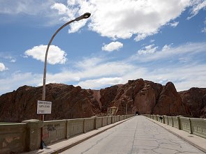 Von der Dammkrone aus hat man einen schönen Ausblick tief hinunter in das grüne Tal auf der einen Seite und auf die Wasseroberfläche des Stausees mit den roten Felsen als Begrenzung auf der anderen Seite. Auf der bei Windstille ruhigen Wasseroberfläche schwammen Möwen und Schwarzhalsschwäne.