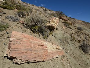 Der eigentliche Grund für Touristen überhaupt in Sarmiento abseits der üblichen Touristenpfade zu wohnen sind die einmaligen versteinerten Wälder ganz in der Nähe südlich des Ortes. Im Jahr 2003 waren wir schon einmal hier, damals nannte man sie noch offiziell José Ormachea Petrified Forest. Bilder von diesem Besuch, noch mit Dias fotografiert und dann eingescannt, findet Ihr auf den beiden Seiten Versteinerte Wälder - José Ormachea Teil 1 und Versteinerte Wälder - José Ormachea Teil 2.