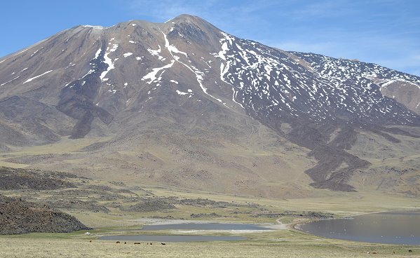 Der Vulkan Tromen ist ein 4.114 Meter hoher Schichtvulkan im Nordosten der Provinz Neuquen und der zweithöchste Berg im argentinischen Patagonien, nach dem Vulkan Domuyo mit 4.709 Metern, der 70 Kilometer entfernt in Richtung Nord-Nordwest liegt. Ihn haben wir ebenfalls besucht, auf der Seite Aguas Calientes zu sehen.