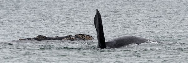So sieht man oft, wie sie ihre Flipper in den Himmel recken. Auch die Beobachtung von springenden Walen in der Bucht ist keine Seltenheit.