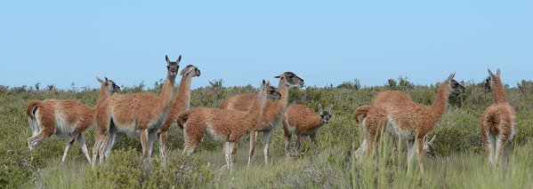 Leider fuhren wir kurz nach dem Pinguin-Aussichtspunkt vor eine Schranke, die Strecke am Meer entlang war für den Verkehr gesperrt. Daher mussten wir einen Umweg durch das eher langweilige Innere der Halbinsel fahren um zum begehrten Strand und zu der Kolonie von See-Elefanten in Punta Norte zu gelangen. Immerhin sahen wir auf dieser Strecke noch ein paar Gruppen von Guanakos.