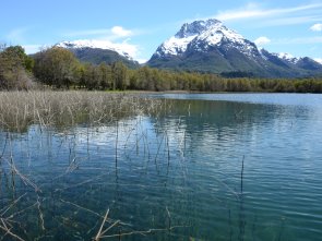 Zuerst fuhren wir aus Bariloche heraus auf der Ruta Nacional No. 258, überquerten die Pampa de Huenuelo und fuhren an den Seen Lago Gutierrez und Lago Mascardi vorbei in südlicher Richtung. Der Lago Mascardi ist 23 km lang, 4 km breit und 218 m tief. Der Lago Gutierrez ist 111 m tief und hat eine Oberfläche von 16,4 qkm. Beide Seen liegen auf rund 750 m Höhe. Schon dort konnten wir uns kaum satt sehen an dem wunderbaren Bergpanorama rundum. Weißer Schnee vor blauem Himmel.