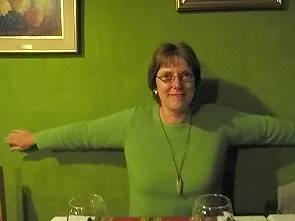 An diesem Abend ließen wir uns im Hotel ein paar Restaurants empfehlen, die wir dann jeweils erst einmal von außen anschauten. Da wir weder Lust auf Fleischberge noch auf Live-Musik hatten, entschieden wir uns für das urige Restaurant El Patio in der Lavalle 352 mit origineller einheimischer Küche. Mit seinen Holztischen, der urigen Dekoration und grünen Wänden wirkte es sehr gemütlich, unten ist es im Film, leider in schlechter Qualität, zu sehen. Sogar mein Pullover passte farblich exakt ins Ambiente, wie auf dem Foto zu sehen ist. Die umfangreiche Karte bot so viel, hier hätten wir mehrere Tage hintereinander essen gehen können. Das Lokal wurde im Laufe des Abends dann auch sehr voll, was für die Qualität der Küche spricht.