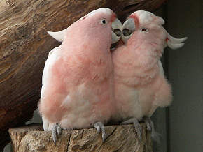 In vielen Parks gibt es große, teilweise begehbare Volieren, in denen verschiedene Kakaduarten zusammenleben. Die Bilder auf dieser Seiten stammen aus der Voliere im Kyabram Fauna Park nahe Echuca im Norden von Victoria. Mehr dazu auf dieser Seite.