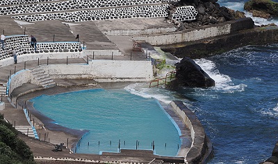 Dann gibt es noch die die kommunalen Badebecken bzw. Meeresschwimmbecken - "Piscinas Municipais" oder "Piscinas Naturais" genannt. Fast jede Gemeinde auf den Azoren hat ihre eigenen kleinen, oft spektakulär angelegten Badeanlagen im Lavagestein direkt am Atlantik. Sie sind oft befestigt, mit Leitern, Plattformen und manchmal sogar Umkleiden und Duschen versehen.
