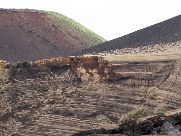 Die schwarz-graue, staubigen Sandoberfläche aus Asche ist einzigartig. Sie unterscheidet sich stark von den Lavaausbrüchen, die beispielsweise in Island aufgetreten sind. Dort sieht man hauptsächlich dunkle, schwarze, heiße Lava. Hier sieht man hauptsächlich Asche.