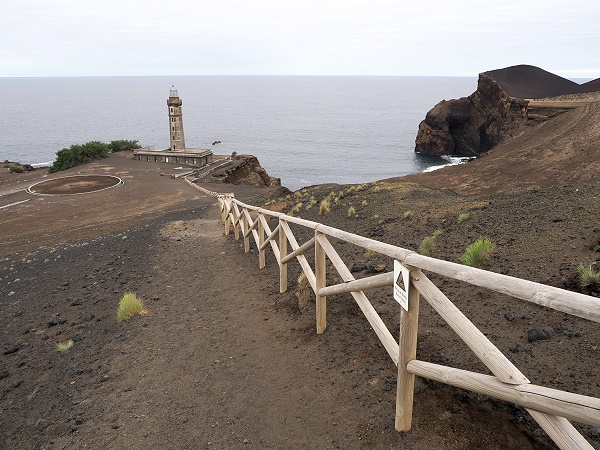 Der Leuchtturm Farol da Ponta dos Capelinhos, einst direkt am Meer, stand nach dem Ausbruch plötzlich weitab der Küstenlinie im Vulkansand. Er wurde 1903 an der Westspitze Faials erbaut, um Schiffe vor den gefährlichen Klippen zu warnen.