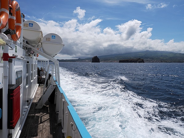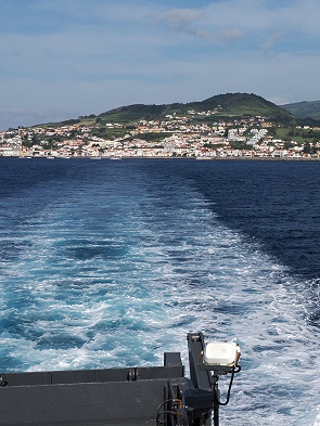 Wir haben nach Ankunft unser Auto direkt im Fährterminal übernommen und dort auch wieder abgegeben. Die Fähre von Madalena nach Horta, die Blaue Linie, fährt mehrmals täglich und braucht nur eine knappe halbe Stunde. In der Hochsaison (Juni–September) pendelt die Fähre bis zu achtmal täglich hin und her, außerhalb der Saison sind es etwa vier bis sechs Fahrten pro Tag.