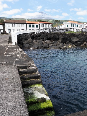 Der Hafenbereich wirkt lebendig und farbenfroh, mit Booten, Anglern und einem ruhigen Meeresblick, eingerahmt von der grünen Hanglandschaft und vom Vulkan Pico im Hintergrund. Am Tag unseres Besuchs ließ der Berg sich sogar sehen und wir waren begeistert, denn die Tage zuvor waren voller Wolken. Kaum war die Sonne da, waren sogar einige Besucher im Hafenbecken schwimmen.