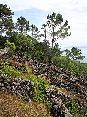 Nach Jahrhunderten hat sich auf dem Lavafeld eine dichte Vegetation entwickelt. Auf den neu entstandenen, dunklen Lavaflächen rund um Prainha legten bereits die Franziskanermönche im 17. oder 18. Jahrhundert erste Weinreben-Flächen an. Nachdem die Reblaus alles vernichtet hatte, wurden Orangen angebaut, die sind hier aber auch eingegangen. So sieht man heute nur noch die Reste von Häusern und Weinparzellen, den currais.