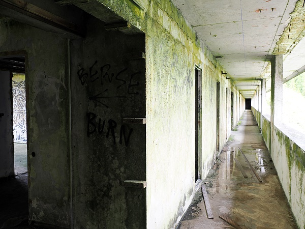 Alles wurde geplündert, beschädigt und schließlich dem Verfall überlassen. Heute sind nur noch die kahlen Betonwände, das Dach und der Boden übrig ,eine wilde Betonruine die von der Natur überwuchert wurde, mit offenen Fensterhöhlen und Graffiti an den Wänden.