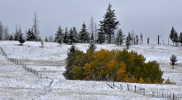 Bei Riske Creek erreichten wir dann den Highway 20, dem wir in Richtung Bella Coola folgten. Bis Alexis Creek war die Landschaft immer noch verschneit, erst dahinter wurde es grüner. Ein paar Tage später, bei unserer Rückfahrt von Bella Coola in Richtung Williams Lake, hatte die Schlechtwetterfront die Coast Mountains erreicht und wir durften sie erneut erleben, Bilder dazu auf der Seite Heckman Pass.