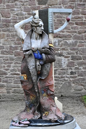 Bei unserem Besuch standen noch überall auf den Terrassen im Schlosspark 23 riesige Figuren des Künstlers Jürgen Goertz. Die Ausstellung "Der allegorische Blick" zeigt Großskulpturen aus der Zeit von 1974 bis 2020. Der "Musengaul", eine eindrucksvolle Großskulptur bezog schon im Herbst 2019 den Schlossgarten und weckte die Neugier der Besucher auf die Ausstellung. Am 25. Oktober 2020 wurde die Präsentation beendet.