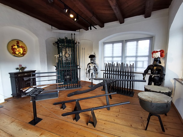 Aber auch die Daueraustellung lohnt einen Besuch, die Räume der Burg sind mit viel Originalinventar der ehemaligen Besitzer ausgestattet. Es sind Möbel aus unterschiedlichen Epochen zu sehen und in einem Raum sind Waffen und Rüstungen zu bewundern. Lampen aus Hirschgeweihen setzen Akzente an der Decke. Die Zimmer sind teilweise sehr gemütlich eingerichtet, so dass man sich durchaus vorstellen kann hier zu wohnen.