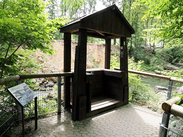 Direkt gegenüber auf der anderen Seite der Landstraße kann man kostenlos parken und somit muss man nicht all zu weit laufen. Viele Besucher kommen auch im Rahmen einer 1,8 Kilometer langen Wanderung aus der anderen Richtung vom Naturparkzentrum Teufelschlucht und Dinosaurierpark hierher.