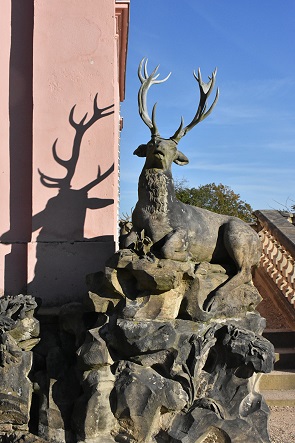 Der 1772 entstandene Venusbrunnen ist eine der größten barocken Brunnenanlagen in Sachsen. Venus ist hier mit Amor und Schwänen auf einem künstlichen Felsmassiv dargestellt, das sich in einem ohrmuschelförmigen Becken erhebt. Der Brunnen symbolisiert das östliche Ende eines teilweise parallel zur Schneise verlaufenden Kanals, dem wir beim Spaziergang folgten.