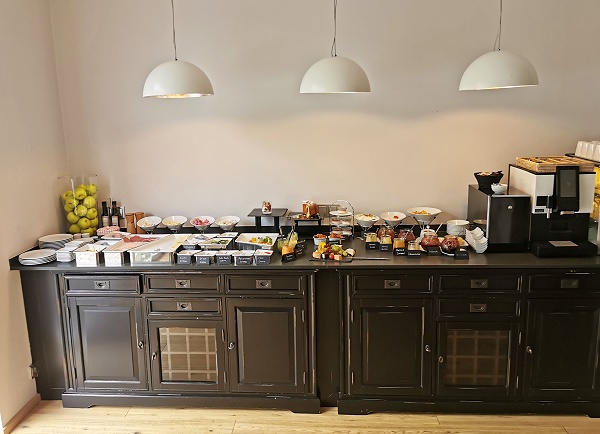 An Stelle einer Minibar gibt es im unteren Geschoss Kühlschränke, gefüllt mit Bier, Softdrinks und Weißwein. Dazu gibt es auch eine große Auswahl an guten Rotweinen und dazu passende Gläser. Man kann sich etwas aussuchen und mit aufs Zimmer nehmen, in einer Liste wird einfach auf Vertreuensbasis eingetragen was man mitnimmt. Im Frühstückszimmer steht den ganzen Tag eine Kaffeemaschine für die Gäste bereit, man kann sich hier kostenlos bedienen.