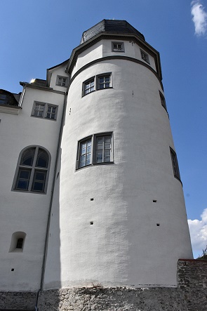 Der älteste Bauteil ist der Rundturm aus der Zeit um 1200, dessen neuere Teile jedoch im Stil der Renaissance zwischen 1539 und 1547 erbaut wurden. Im Südostflügel befindet sich das klassizistische Große Empfangszimmer, der Rote Saal, ein Entwurf von Karl Friedrich Schinkel. Leider war alles geschlossen als wir vor Ort waren.