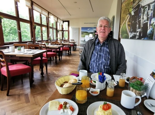 Am zweiten Morgen war ausgebucht, nicht nur eine grössere Gruppe war im Hotel. Auch Gruppen von außerhalb kommen wohl gerne zum Frühstück hierher, dem entsprechend war es voller. Zwar ein Mittwoch, aber der Tag vor Christi Himmelfahrt.