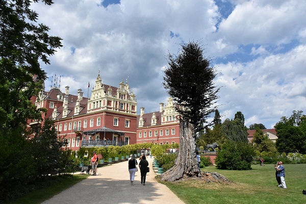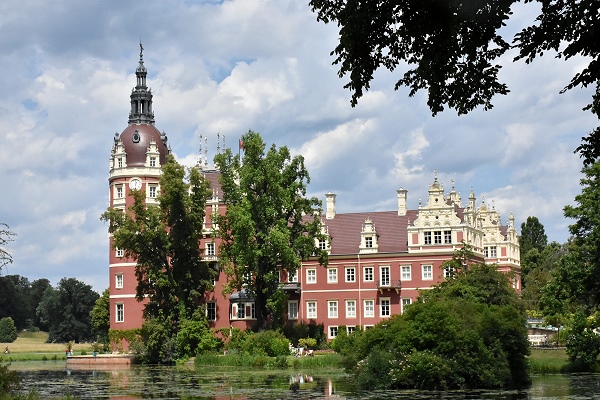 Doch dahinter liegt, gut renoviert, das Neue Schloss in Rot und Vanilletönen, das natürlich besucht werden möchte wenn man schon mal in der Gegend ist. Die Daueraustellung "Pückler! Pückler? Einfach nicht zu fassen!" zeigt neben Räumen, Möbeln und Einrichtungsgegegständen auch vieles aus dem Leben des reiselustigen Fürsten. Geöffnet ist hier vom 01. April bis 31. Oktober 2022, der kombinierte Eintritt mit Ausstellung, Turmaufstieg mit Ausstellung und Sonderausstellung kostet 10 Euro pro Person. Der Eintritt in den Landschaftspark ist kostenlos.