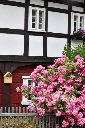 Sowohl große als auch sehr kleine dieser denkmalgeschützten Baudenkmäler prägen so den historischen Ortskern der Gemeinde, die meisten sind sehr schön renoviert und haben liebevoll gepflegte Gärten. Duch viele kleine Straßen und Gassen sind wir hier kreuz und quer durch, überall boten sich neue Perspektiven.
