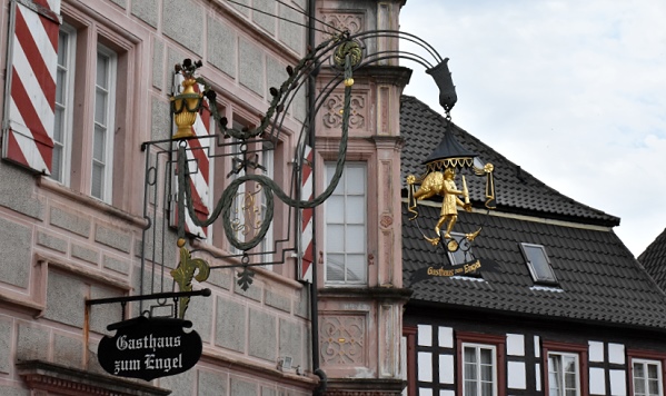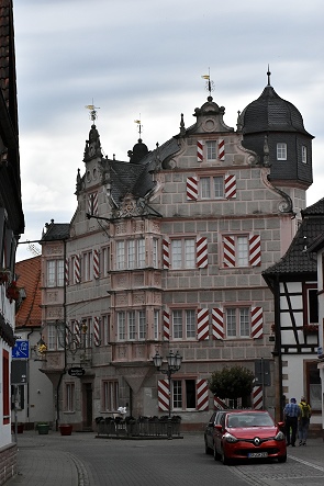 Vorbei am Landschreiberhaus erreicht man das schönste Haus der Stadt: das Gasthaus "Zum Engel", ein Renaissancebau mit rot-weiß gestreifeten Fensterläden, 1556/79 von den Herzögen von Pfalz-Zweibrücken erbaut, zunächst als Amtssitz der Oberamtmänner des Amtsbezirks. Seit 1802 war es ein Gasthaus, 1980 gelangte es in den Besitz der Stadt und wurde grundlegend renoviert. Bei unserenm Besuch fanden auch gerade Bauarbeiten statt, heute ist hier das Museum der Stadt, welches aber geschlossen war.