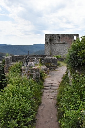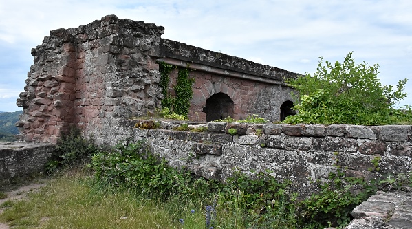 Die Burg ist dreiecksförmig angeordnet und bestand aus einem Wohnpalast aus der Mitte des 13. Jh., dessen restliche Außenmauer an der südwestlichen Längsseite steht. Drei Doppelfenster mit Sitznischen und die 1980 teilrekonstruierten Kaminspuren lassen erahnen, wie es hier einst am staufischen Hof aussah. Dort kann man wunderbar entspannen und in die grüne Umgebung schauen. An besonders schönen Ausblicken wurden hier ein paar Holzrahmen aufgestellt, durch die man gerahmt in die Landschaft schauen kann.