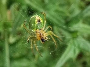 Über einen neue Treppe gelangt man auf einen Rundweg um die Schnabelecke. Er führt einmal um das Gemäuer herum und von hier aus eröffnen sich dem Besucher ganz neue Perspektiven auf die Burg Meistersel. Bei unserem Besuch im Sommer entdeckten wir hier am Wegrand eine besonders große Anzahl von seltenen Insekten, besonders die winzigen bunten Spinnen wie Krabbenspinne und Kürbisspinne hatten es uns angetan. Aber auch Bienen, Hummeln und Schmetterlinge tummelten sich hier an den Blüten.