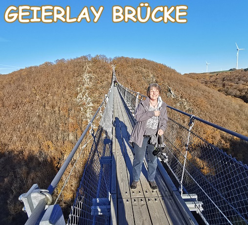 Die Geierlay Brücke überquert das Mörsdorfer Bachtal und galt mit ihren 360 m Länge lange als die längste Hängeseilbrücke Deutschlands. Doch dann folgte die Errichtung der Titan RT an der Rappbode-Talsperre im Jahre 2017, dort waren wir im gleichen Jahr vorbeigefahren und auf Grund der Menschenmassen und fehlenden Parkplätze sind wir dort erst gar nicht ausgestiegen.
