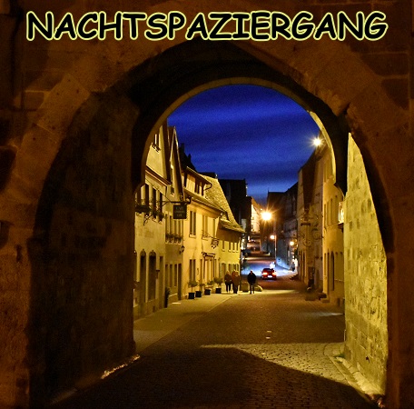 Nach dem Abendessen warteten wir an einem schönen Abend ohne Regen und Sturm ab, bis es dunkel wurde. Dann machten wir uns auf den Weg. Ein kleiner Spaziergang durch die Altstadt von Rothenburg ob der Tauber, fast menschenleere Gassen und wir hofften natürlich auf ein paar beleuchtete Sehenswürdigkeiten. Am Tag hatten wir Scheinwerfer an Türmen wie dem Klingentor oder dem Burgtor und auch an der Stadtmauer gesehen.
