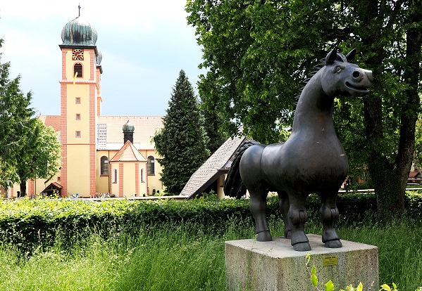 Die Geschichte des Ortes ist eng verbunden mit der Geschichte des Klosters St. Märgen und das schon von weitem sichtbare Wahrzeichen, die Klosterkirche Mariä Himmelfahrt, war auch unser Ziel. Wir fanden einen Parkplatz auf einer entsprechend ausgewiesenen Wiese etwas unterhalb und machten einen kleinen Spaziergang durch den Ort.