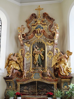 Es gibt neben dem Hochaltar noch drei prächtige Altäre in der Klosterkiche: den Herz Jesu Altar, den Josephsaltar und den Rosenkranzaltar.