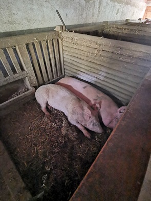 In diesem vergleichsweise modernen Stall hält das Museum heute noch alte Großviehrassen. Direkt neben dem Hof befinden sich die Weide für die Vorder- und Hinterwälder Rinder und der Auslauf für die Deutschen Landschweine. Die Kinder können hier Pferde streicheln, es gibt auch drei Esel namens Benjamin, Bruno und Freddie.