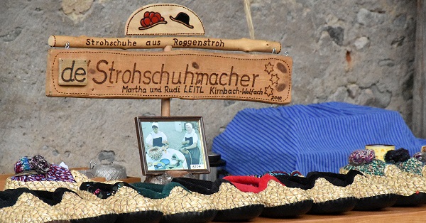 Bei unserem Besuch war der Holzschnitzer aktiv und es wurden Strohschuhe geflochten. Falls noch andere Darsteller vor Ort waren, haben wir sie leider verpasst. Da es immer wieder geregnet hat, waren wir meist in den Häusern unterwegs. Man kann sich aber die Vogtsbauernhof-APP auf sein Smartphone landen und sich die Tour 2: "Dem Handwerk auf der Spur" ansehen. Auf diesem Rundgang werden in kleinen Filmbeiträgen eine Auswahl der über 50 Handwerkerinnen und Handwerker vorgestellt, die regelmäßig im Museum zu Gast sind.