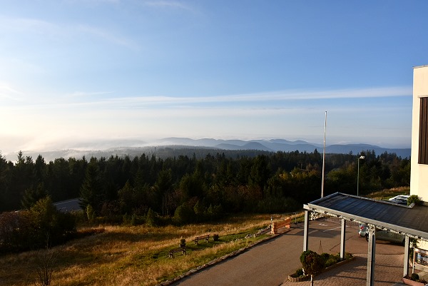 So schauten wir über die benachbarte Schwarzwaldhochstraße auf die schöne Schwarzwaldlandschaft, die im Herbst meist oberhalb der Wolken lag. Mit Panorama-Rundbblick und nicht weit vom Lotharpfad und der Hornisgrinde entfernt. Nachts war die Straße so gut wie gar nicht befahren, zur schöneren Seite liegen natürlich die teureren Zimmer und Suiten.
