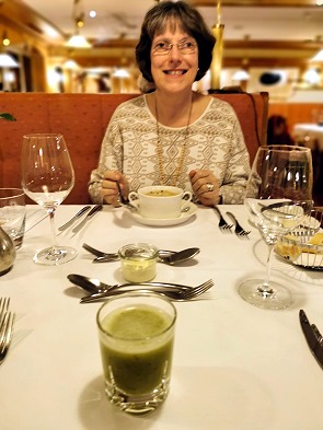 Am Abend gibt es dann zwischen 18:00 und 19:30 Uhr ein 5-Gang Verwöhn-Menü. Hier hat man verschiedene Wahlmöglichkeiten, die man direkt beim Kellner von einer Menükarte bestellen kann. Es ist auch kein Problem statt Suppe eine zweite Vorspeise zu bekommen, einen Nachschlag zu ordern oder Sonderwünsche zu äußern. Man ist hier sehr flexibel und kundenorientiert.