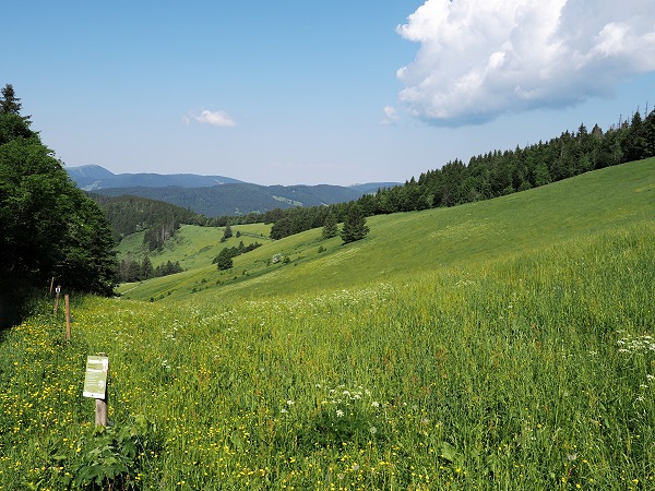 Auf den extensiv bewirtschafteten Weiden an den steilen Hängen finden sich zahlreiche kleine Biotope, diese sind wichtige Standorte vieler seltener Pflanzen und Tiere. Unter anderen wachsen hier Heilpflanzen wie Arnika und verschiedene Orchideen wie das Gefleckte Knabenkraut. Es kommen nahezu alle Arten aus der FFH-Liste zu schützender Moose und Farne Baden-Württembergs vor. Auch die vielen Blockhalden und Felsen im Gebiet beherbergen Trockenheits-Spezialisten in der Tier- und Pflanzenwelt. So kamen wir hierher in der Hoffnung ein paar seltenere Insekten und Pflanzen zu fotografieren.
