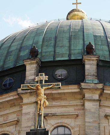 Die beeindruckende Kuppelkirche wird auch "Schwarzwalddom" genannt. Auf dieser Kirchenkuppel mit 36 m Durchmesser strahlt weithin sichtbar der goldene Reichsapfel mit dem Kreuz, denn das Kloster war Reichsabtei. Die Gesamthöhe der Kuppel beträgt 63 Meter. Die quadratischen Glockentürme von jeweils zwölf Meter Breite und 30 Meter Höhe bilden gemeinsam mit der Vorhalle die Frontseite der Kirche und jeder Glockenturm trägt ein Zifferblatt. In den Türmen befinden sich insgesamt neun Glocken.