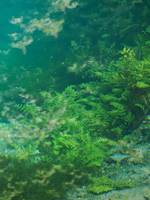 Doch die vielen Leute kommen nicht nur hierher, um von oben auf eine Quelle zu sehen, diese hier ist auf Grund der Farbe etwas Besonderes. Je nach Lichteinfall ist die Türkise bis Blaue Farbe des Wassers hier mehr oder weniger intensiv. Dieser Farbeindruck entsteht durch Rayleigh-Streuung von Tageslicht an wenige Nanometer großen Kalkpartikeln, die im Wasser der Quelle enthalten sind. Durch die geringe Größe der Partikel wird blaues Licht bevorzugt gestreut und erzeugt so das berühmte blaue Leuchten.