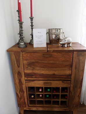 An einem anderen Abend gab es Schnitzel mit Spätzle und Gemüse und nach einem dazu passende Wein brauchten wir nicht lange suchen - man findet in dieser Ferienwohnung natürlich auch ein paar Flaschen Wein und einige Knabbereien, die man zum Selbstkostenpreis verbrauchen kann. Ein kleines silbernes Sparschwein steht zur Bezhalung bereit.