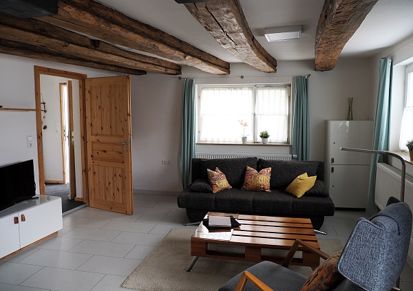 Die Ferienwohnung namens "Die Schmiede" befindet sich in einem über 200 Jahre alten Gebäude und liegt zentral im kleinen Ort Schopfloch. Bei unserer Ankunft kümmerte sich die Mutter der hier lebenden netten Familie Flügel um uns, die nur ein paar Häuser weiter wohnt. Alles wurde uns gezeigt, und da wir hier waschen wollten, brachte sie uns noch extra etwas Waschpulver vorbei, sehr nett.