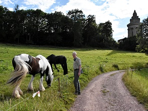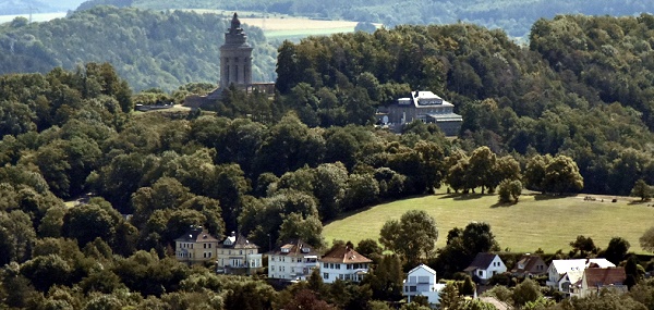 In der Umgebung des Hotel führen Wanderwege zu den Attraktionen in Eisenach, teilweise geht es steil bergab. Wir blieben am Abend auf der Göpelskuppe, die ihren Namen im 19. Jahrhundert nach dem damaligen Grundbesitzer erhielt. Das stadtnahe, seit dem Mittelalter entwaldete Gebiet wurde landwirtschaftlich genutzt. Das erste Bild im oberen Bildabschnitt zeigt den Blick von der Wartburg rüber auf das Burschenschaftsdenkmal und das Berghotel mit einem kleinen Teil der darunter liegenden Villen.