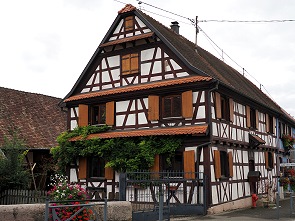 Auf dem Weg von Wissembourg nach Ribeauvillé besuchten wir zuerst den schönen Ort Obernai. Er liegt 25 km südwestlich von Straßburg an den Ufern der Ehn und so hieß er früher Ehnheim und heute lautet die deutsche Bezeichnung Oberehnheim. Danach hatten wir ein sehr gutes Mittagessen auf dem Land bei Erstein im Restaurant Auberge de la Tuilerie in der Rue des Muguets. Dort konnten wir bis zur Schließung um 14:00 Uhr im Freien auf der Terrasse sitzen.