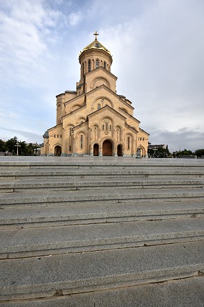 Die Dreifaltigkeits-Kathedrale, auf georgisch Samebas Tadsaro, ist das größte Kirchengebäude in Transkaukasien und die dritthöchste christlich-orthodoxe Kathedrale der Welt. 105 Meter hoch ist der Turm. Errichtet wurde der Monumentalbau zwischen 1995 und 2004 hoch oben auf dem Elia-Hügel nach Plänen des Architekten Artschil Mindiaschwili.