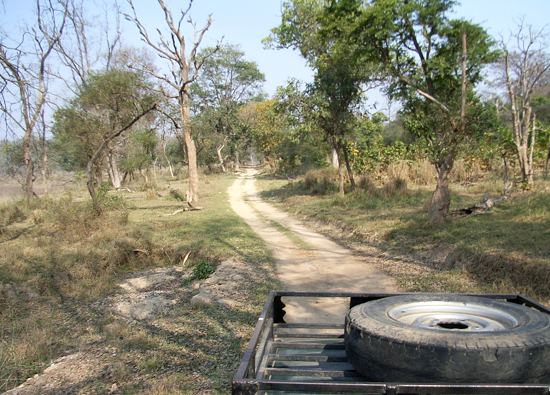 Entgegen anderer Berichte gibt es nur einen offiziellen Eingang zum Nationalpark: das Chilla Gate. Es gibt zwar noch andere Eingänge, aber nur zum Forest Reserve. Hinter dem Haupteingang in Chilla liegt ein Rundweg, den man nur als Einbahnstraße befahren darf. Für eine Runde benötigt man mit Stopps zum Fotografieren ca. 3 Stunden. Wir kamen mit dem Jeep von unserer schönen Unterkunft, dem Wild Brook Retreat, um innerhalb der Parkgrenzen auf Safari zu gehen. Doch schon die Fahrt zum Hotel im Nanali Valley führt teilweise durch den Nationalpark und an seiner Grenze vorbei. Man darf da nach Einbruch der Dunkelheit offiziell nicht mehr fahren, dennoch machten wir eine Safari am Morgen und eine am Abend. Mehr dazu auf der Seite Pirschfahrt.