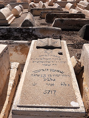 Es war sehr heiß und es gibt kaum Schatten hier. Die Atmosphäre ist fast surreal, ein orthodoxer Jude besuchte gerade ein Grab. Sonst waren nur eine Hand voll anderer Touristen hier unterwegs.