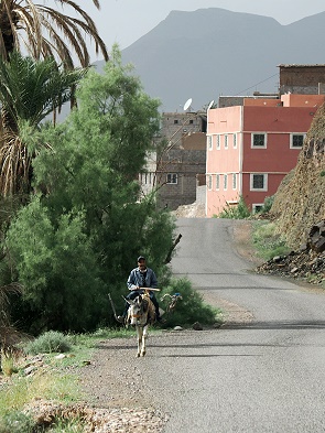 Ab und zu sieht man moderne Schulen am Wegesrand sowie die obligatorischen Moscheen in jedem Dorf. Es herrscht nur wenig Verkehr, die meisten Menschen sind mit Mopeds oder Eseln unterwegs, zu Schulschluss gibt es vor den Schulgebäuden an der Straße große Gruppen von Kindern und Jugendlichen.