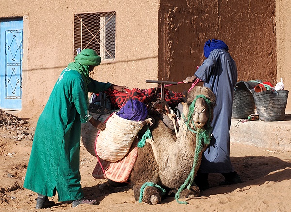 Die Straße führt dann wieder in Richtung Norden, vorbei an den Resten eines eingestürzten Plateaus, von denen nur noch die Ränder übrig sind, verkohlt und zerkratzt durch die Erosion unzähliger Wadis. Direkt dahinter befindet sich die Grenze zum benachbarten Algerien. Die Fahrt geht vorbei an Dörfern mit modernen Häusern und Zelten und ermöglicht uns einen Einblick in das Leben der Oasen und der Nomaden.