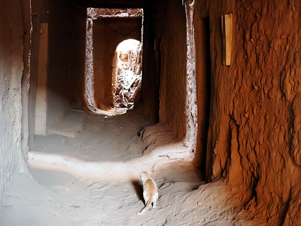 Kaum hatten wir den labyrinthischen Komplex aus dunklen und mysteriösen Tunneln betreten, waren wir in einer anderen Welt. Eine intelligente architektonische Bauweise umgab uns, die es der Bevölkerung ermöglicht, sich vor sommerlicher Hitze und Sandstürmen zu schützen. Immer wieder öffnet sich die Bebauung zum Himmel und läßt etwas Licht eindringen, manche Tunnelstrecken sind aber schon recht lang und dunkel.
