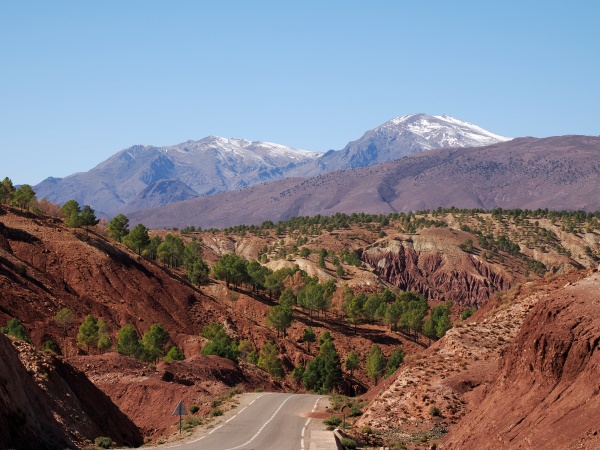Die Landschaft um den Tizi n'Tichka ist eine der abwechslungsreichsten und spektakulärsten in Marokko. Man befindet sich hier im Hohen Atlas, der höchsten Bergkette Nordafrikas. Die umliegenden Gipfel ragen bis über 4.000 Meter empor und trugen natürlich nach den ersten Schneefällen ebenfalls eine weiße Haube.